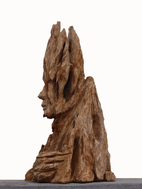 Andreas Kuhnlein arbeitet diese menschlichen Zustände aus dem widerständigen Material Holz mit der Kettensäge heraus. Er schneidet den Stamm ein und auf, unterschneidet ihn und begibt sich immer mehr in sein Inneres. So wie er sich in das Material hineinarbeitet, dringt er auch in die innersten Gefühls- und Seinszustände seiner Figuren ein. Er zeigt sie roh, ungeschliffen, fragil oder impulsiv. Die stets im Menschen innewohnende Würde ist spür- und ablesbar.