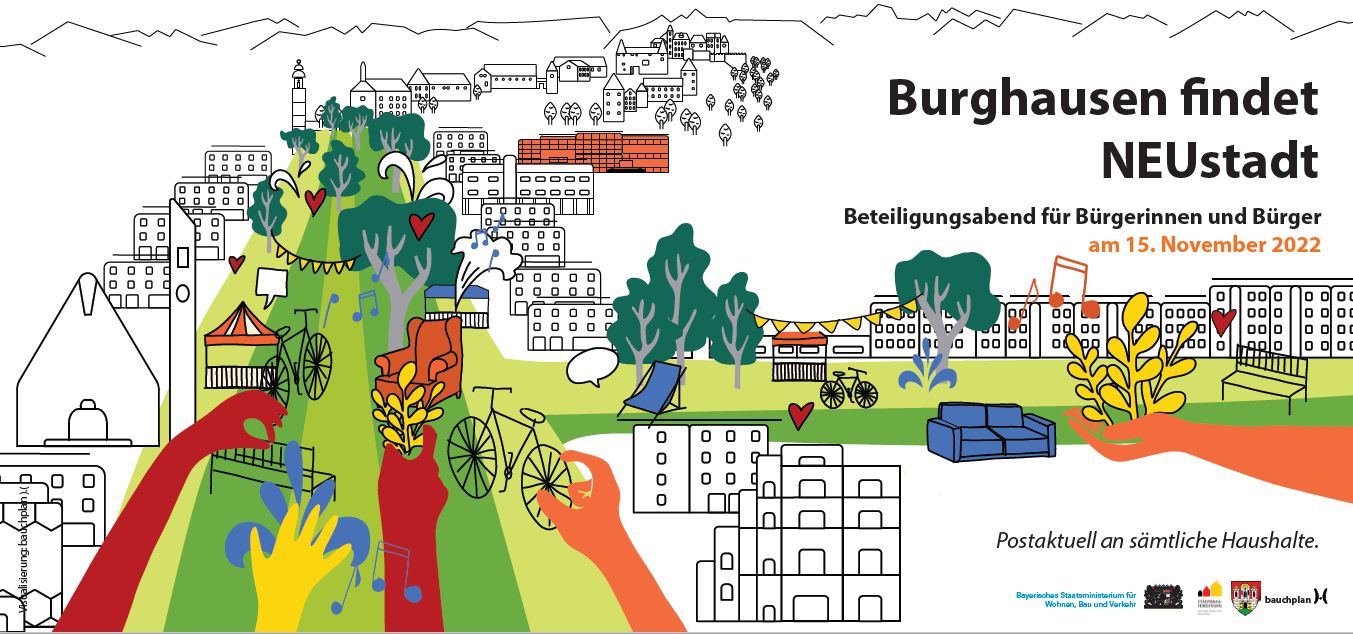 Burghausen. Nach den Beteiligungsprozessen zur Nachhaltigkeit und zur Zukunft der Altstadt in diesem Jahr haben nun alle Bürgerinnen und Bürger das Wort zur Gestaltung der Neustadt: Am Dienstag, 15.11.2022 lädt die Stadt Burghausen in das Bürgerhaus ein. Von 19 bis ca. 21 Uhr erklärt Erster Bürgermeister Florian Schneider zusammen mit dem Planungsbüro Bauchplan die Details.