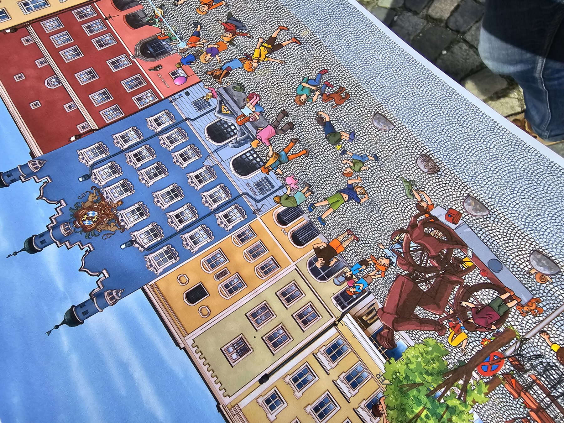 Dritter Bürgermeister Stefan Angstl und Illustrator Frans Stummer stellen erstes Wimmelbild für Burghausen vor – Schulen können Wimmelbilder für den Unterricht nutzen
