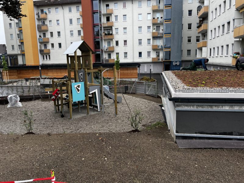 Die Kosten für die Maßnahmen im Innenhof der Herrmann-Hiller-Straße 1 und 1a summierten sich auf etwa 400.000 Euro, die die BuWoG über ein zinsgünstiges Darlehen der KfW-Bank finanziert.