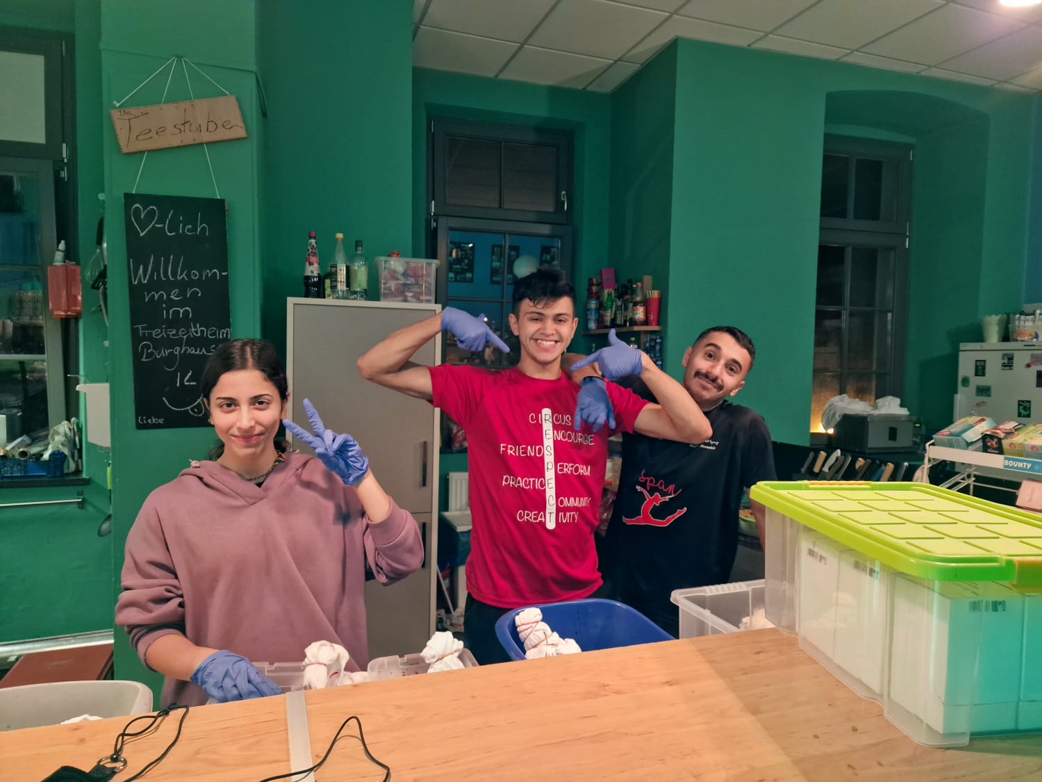 Drei Mitglieder der Nablus Circus School im Freizeitheim in Burghausen