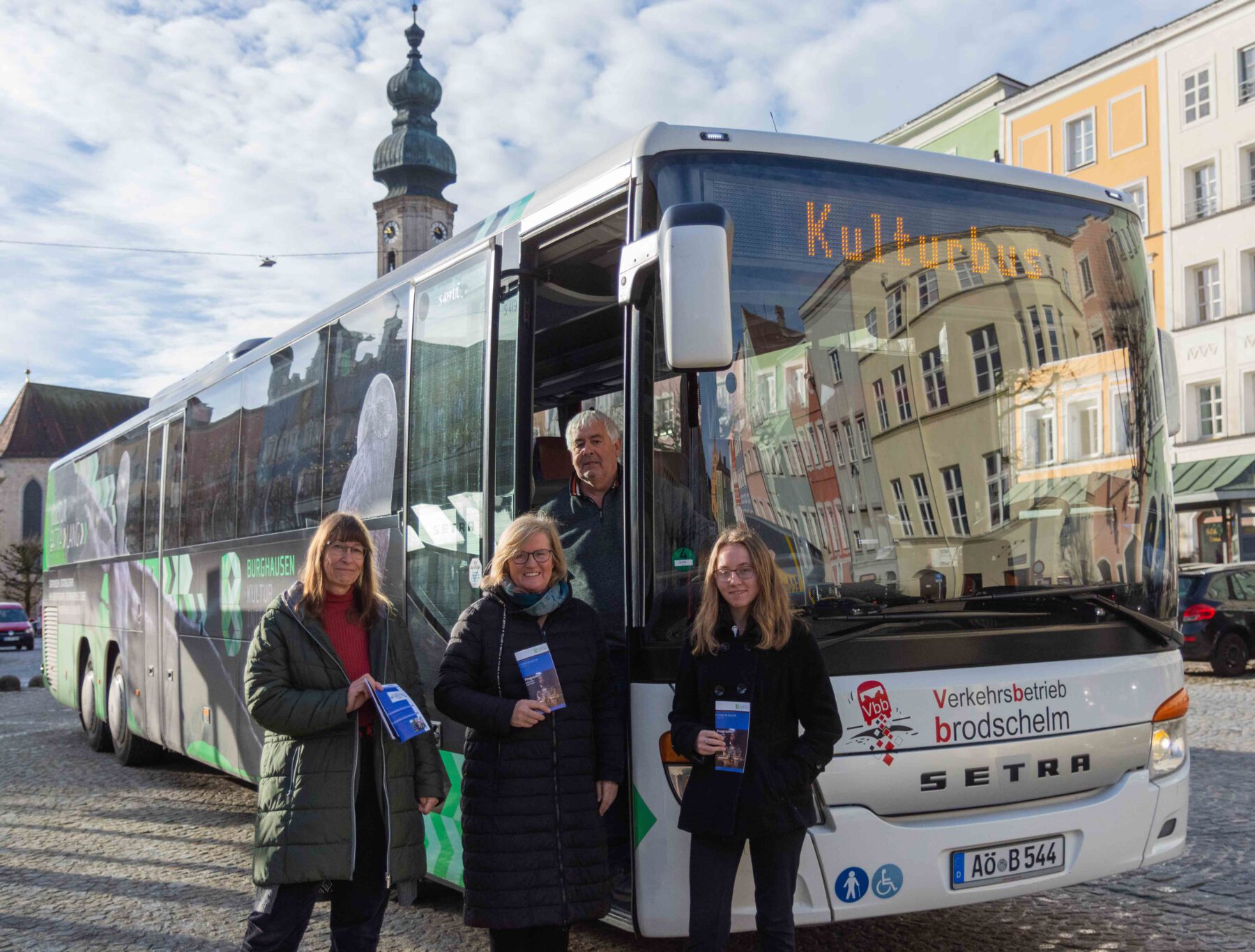 Vor fünf Jahren hat das Kulturbüro in Zusammenarbeit mit der Brodschelm GmbH außerdem den Kulturbus eingerichtet, ein Shuttle-Service der Besucherinnen und Besucher von Veranstaltungen im Stadtsaal oder in Raitenhaslach zum Veranstaltungsort bringt. Der Kulturbus fährt ab dem Bahnhof über die Neustadt zum Veranstaltungsort und nach dem Ende der Veranstaltung wieder zurück. „Der Kulturbus wird sehr gut angenommen. Teilweise ist er komplett voll“, weiß Birgit Reinecke-Reiprich, die Leiterin des Kulturbüros. Wer den Kulturbus nutzen will, meldet sich vorher im Bürgerhaus (Tel.:08677 97400 oder buergerhaus@burghausen.de), bei der Touristik (Tel.: 08677 887-140 oder info@visit-burghausen.com) oder im Kulturbüro (08677 887-156 oder kulturbuero@burghausen.de) an. Weitere Informationen zum Kulturbus finden sie auf der Website der Stadt Burghausen.
