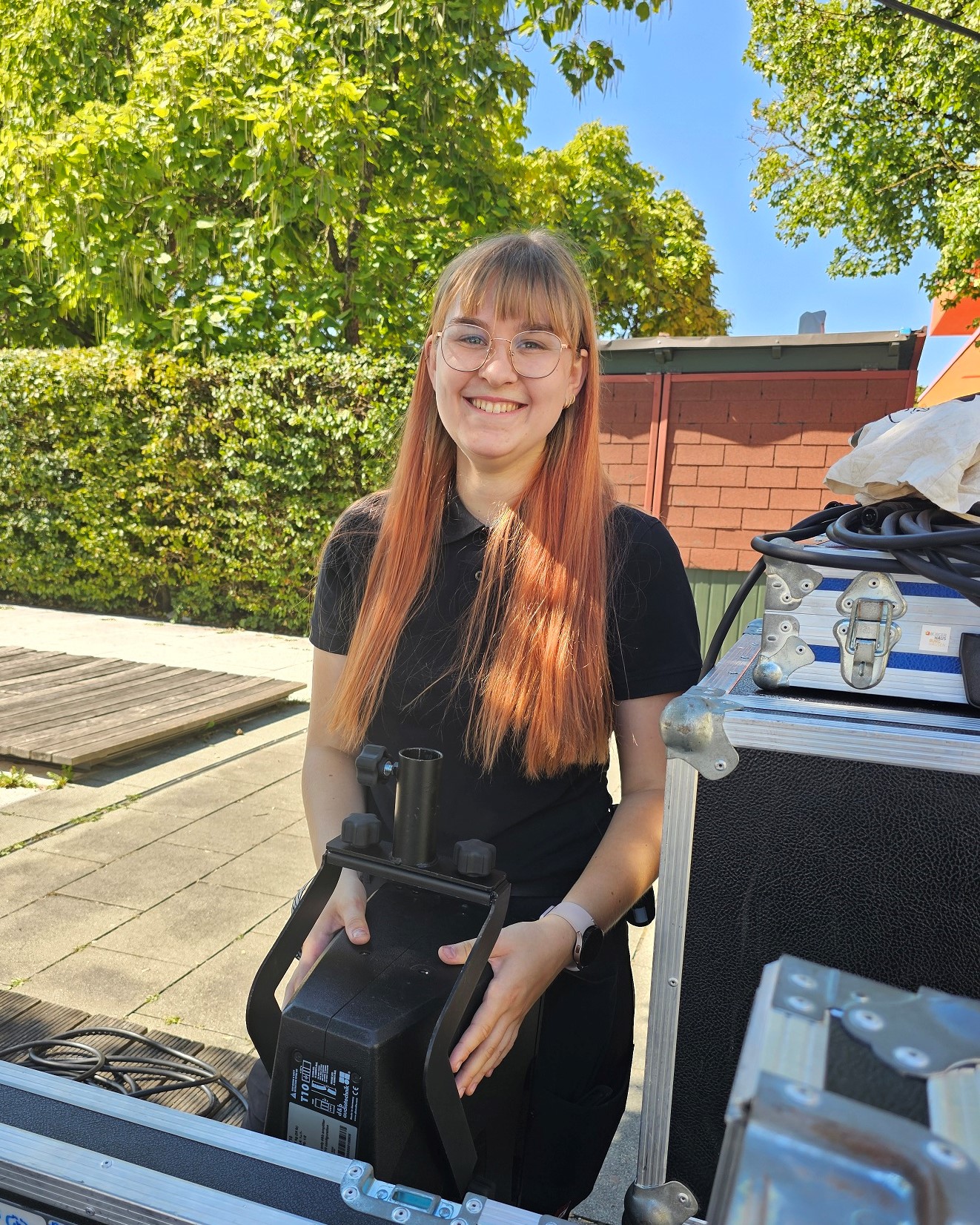 Schon während ihrer Schulzeit am Aventinus-Gymnasium war Alina Mitglied im schulischen Technikteam und begleitete Schulveranstaltungen. Nach dem Abitur wusste sie erstmal nicht, was sie machen will, und sah dann die Stellenausschreibung der Stadt Burghausen, die auf der Suche nach Verstärkung für die Veranstaltungstechniker war. „Da dachte ich mir, warum mache ich nicht einfach das, was mir Spaß macht“, begründet sie ihre Entscheidung für die Ausbildung.