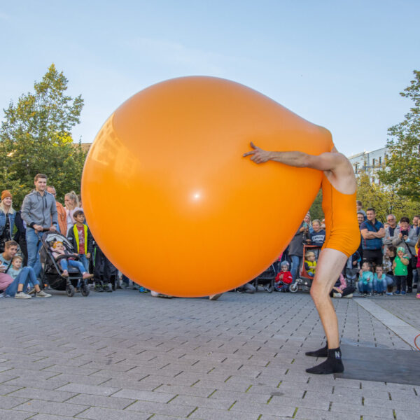 Hohe Zirkuskunst wird präsentiert bei der Nacht der Straßenkünstler.