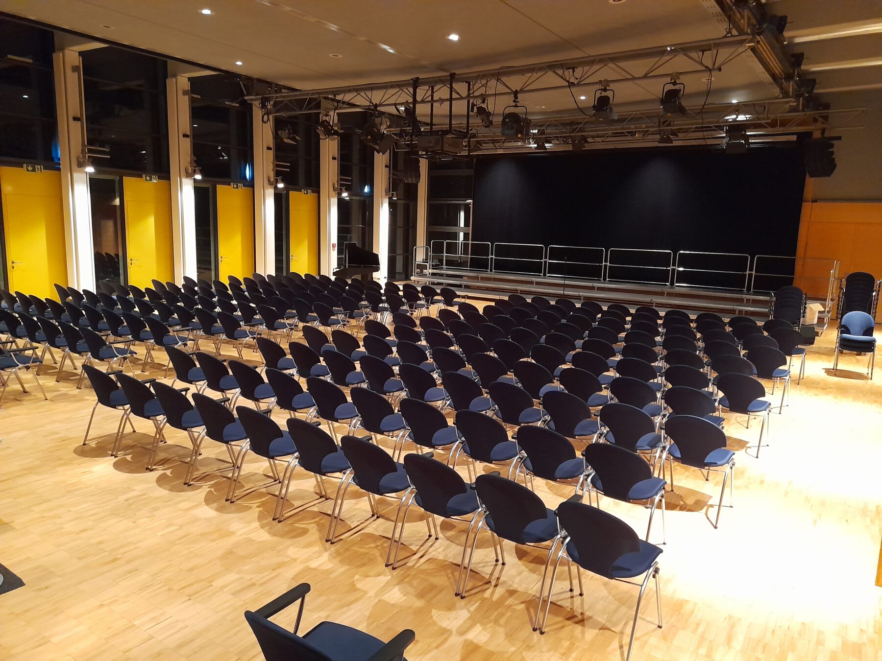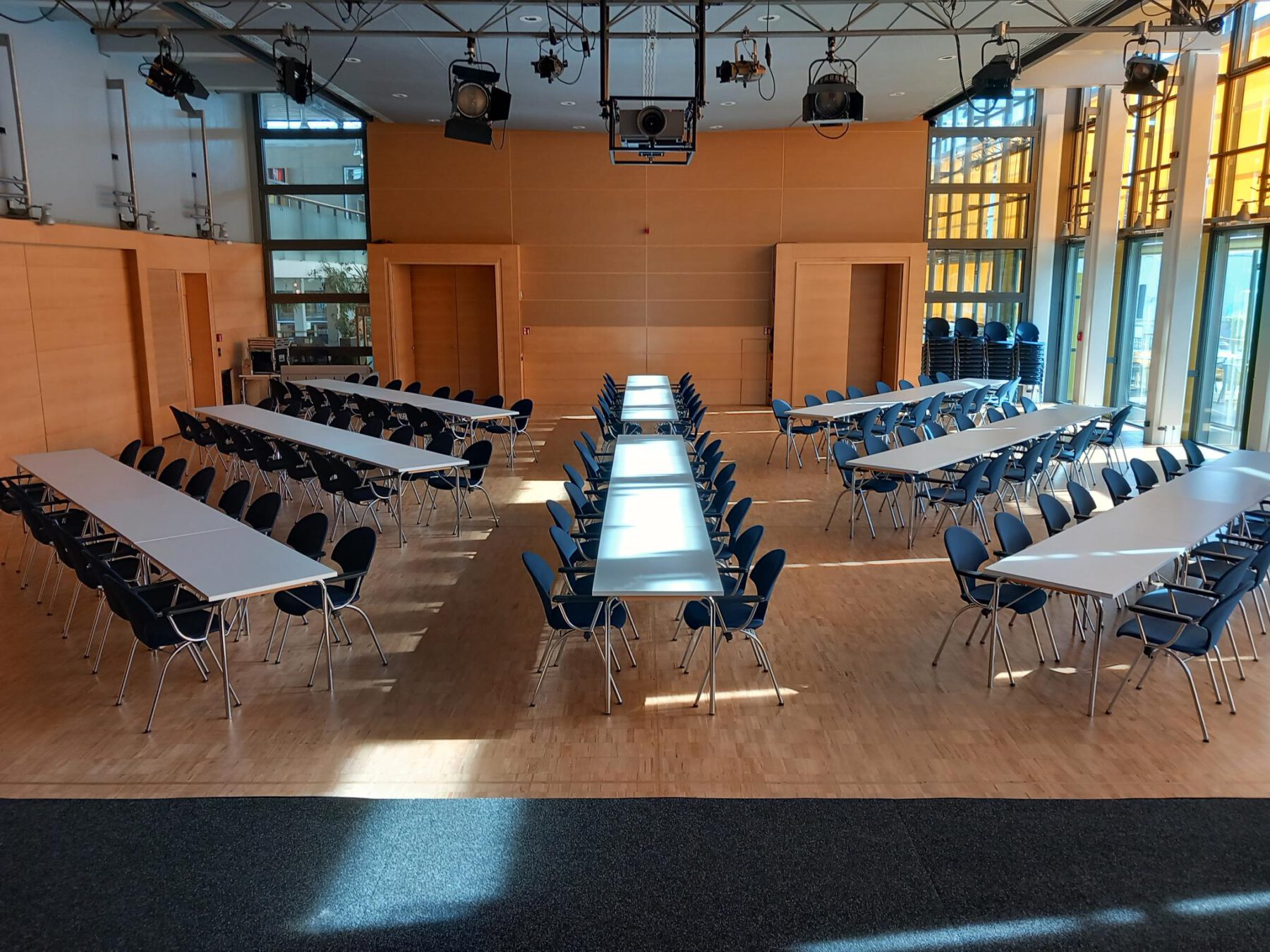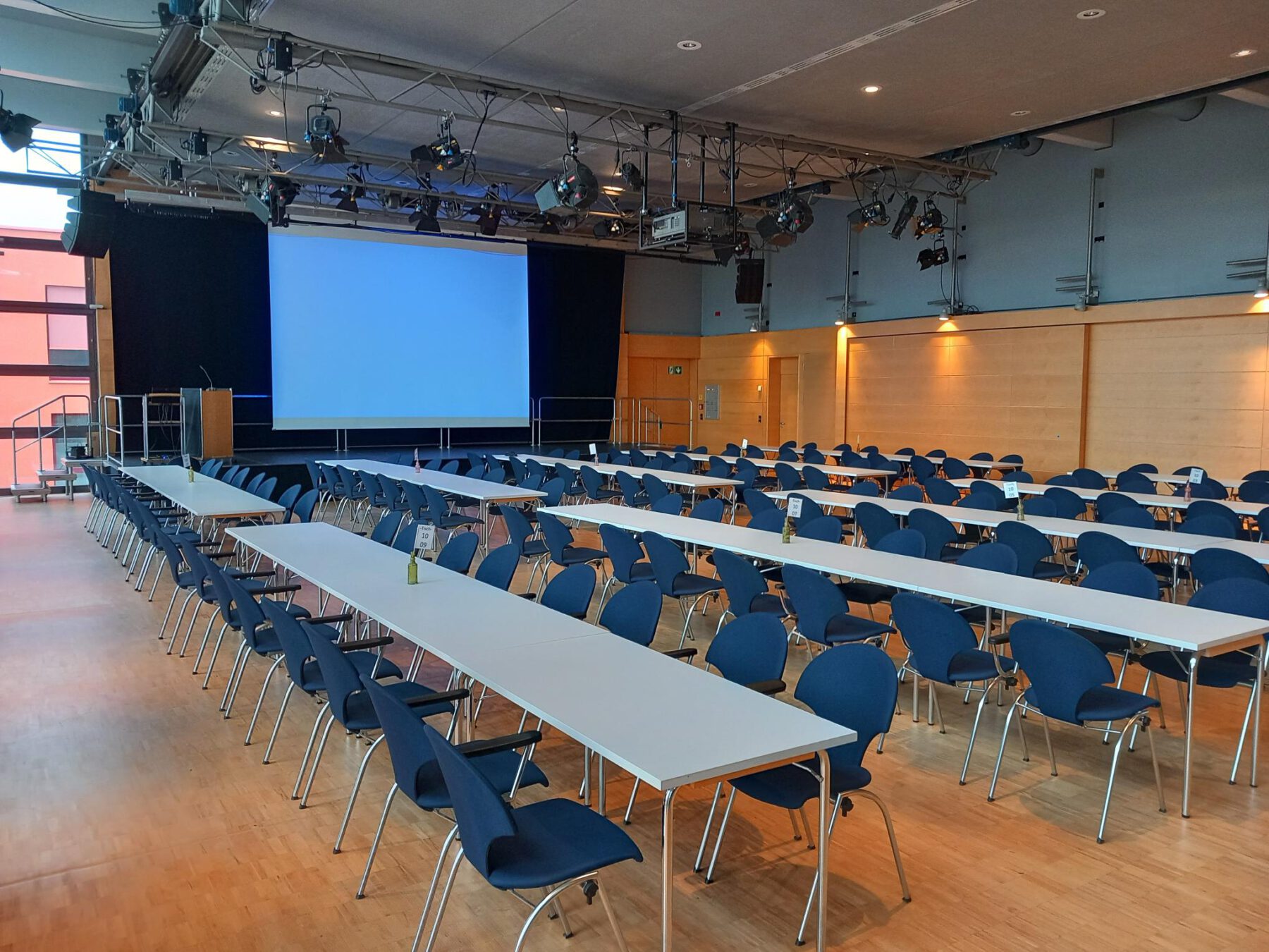 Mit einer großzügigen Fläche von 300 m² ist der Bürgersaal der größte Raum im Bürgerhaus und bietet den perfekten Rahmen für vielfältige Veranstaltungen. Ob Tagungen, Feiern, kulturelle Veranstaltungen oder Vereinsversammlungen – der Saal überzeugt durch seine helle, freundliche Atmosphäre und flexiblen Nutzungsmöglichkeiten. Die Kapazität ist abhängig von der Bestuhlungsart, Ausstattung, Technik, etc.