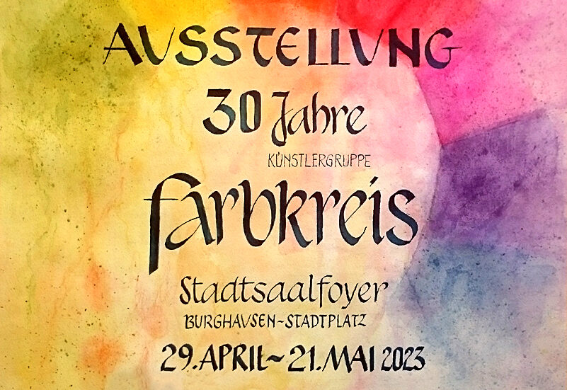 Der Farbkreis feiert dieses Jubiläum mit einer Ausstellung im Stadtsaalfoyer der Stadt Burghausen.