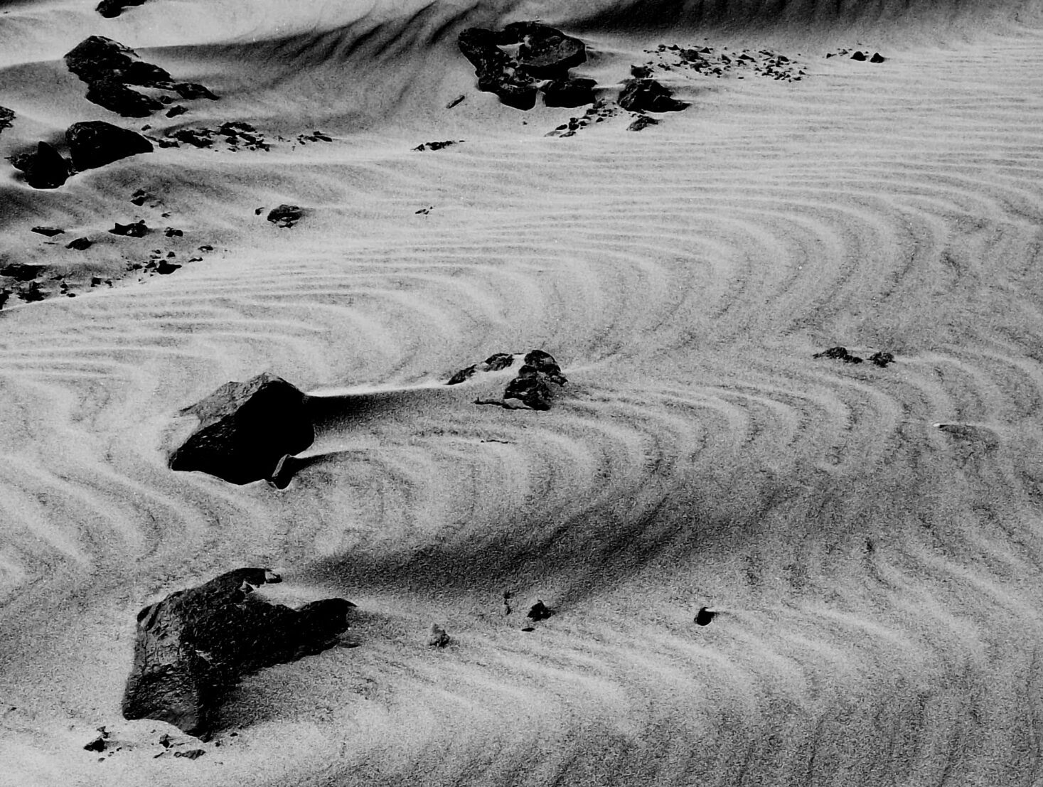 Die natürlichen Kunstwerke bekommen einen besonderen Ausdruck, wenn Tiere, Vögel, Sonne, Wind, Wellen, Wolken oder von Menschen geschaffene Bauwerke sich harmonisch mit ihnen vereinen. Die zum Teil abstrakt wirkenden Fotografien strahlen ohne dominante Farbigkeit eine wohltuende Ruhe aus.