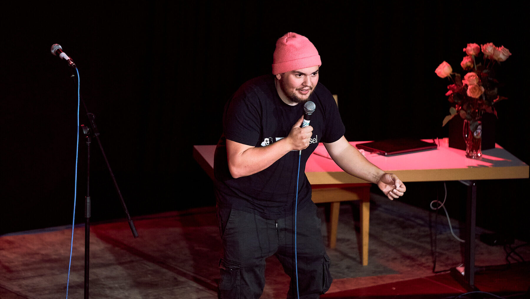 Der “Rosenslam” blickt inzwischen auf über 30 Slams in der Theaterinsel Rosenheim sowie Gastauftritte in allen Ecken der Republik zurück. Moderator Thomas Eiwen ist selbst Poetry Slammer, Standup-Comedian und Schauspieler. Studiert hat er vieles, zuletzt Latein und Altgriechisch, aber nicht auf Lehramt, sondern auf gut Glück. Auf Poetry Slam Bühnen steht er seit 2019, seitdem moderiert und organisiert er auch den Rosenslam.