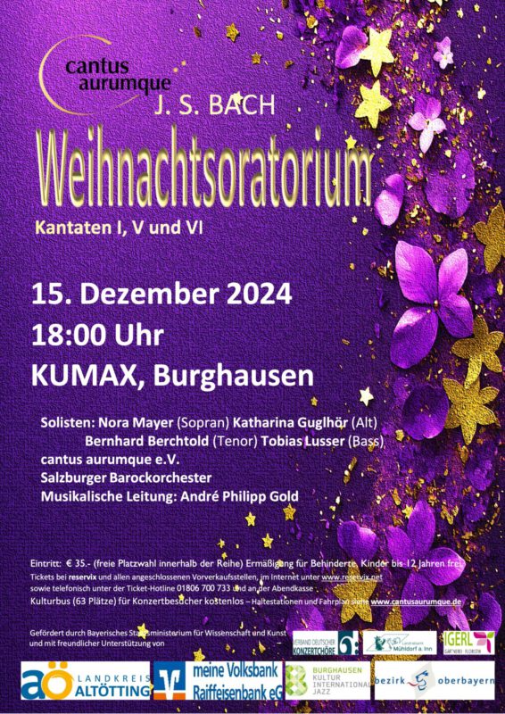 - Ticketverkauf unter: https://www.reservix.de/tickets-weihnachtsoratorium-js-bach-kantaten-i-v-und-vi-in-burghausen-kurfuerst-maximilian-gymnasium-aula-am-15-12-2024/e2325556