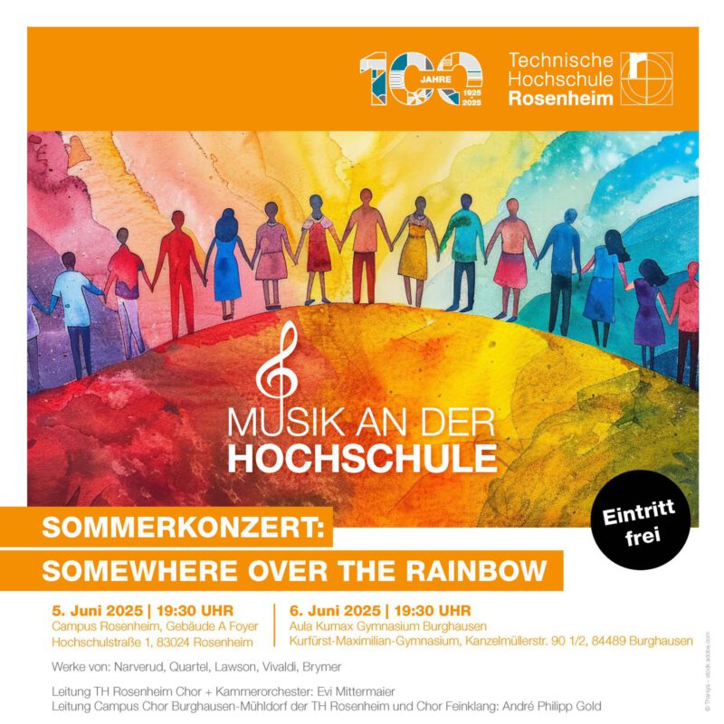 Chorliebhaber aufgepasst: Es gibt einen Grund zur Vorfreude, denn die Chöre der TH Rosenheim und des Feinklangs in Neuötting haben wieder eine musikalische Kreation für euch auf die Beine gestellt – diesen Sommer unter dem schwerelosen Motto “Somewhere over the rainbow”.