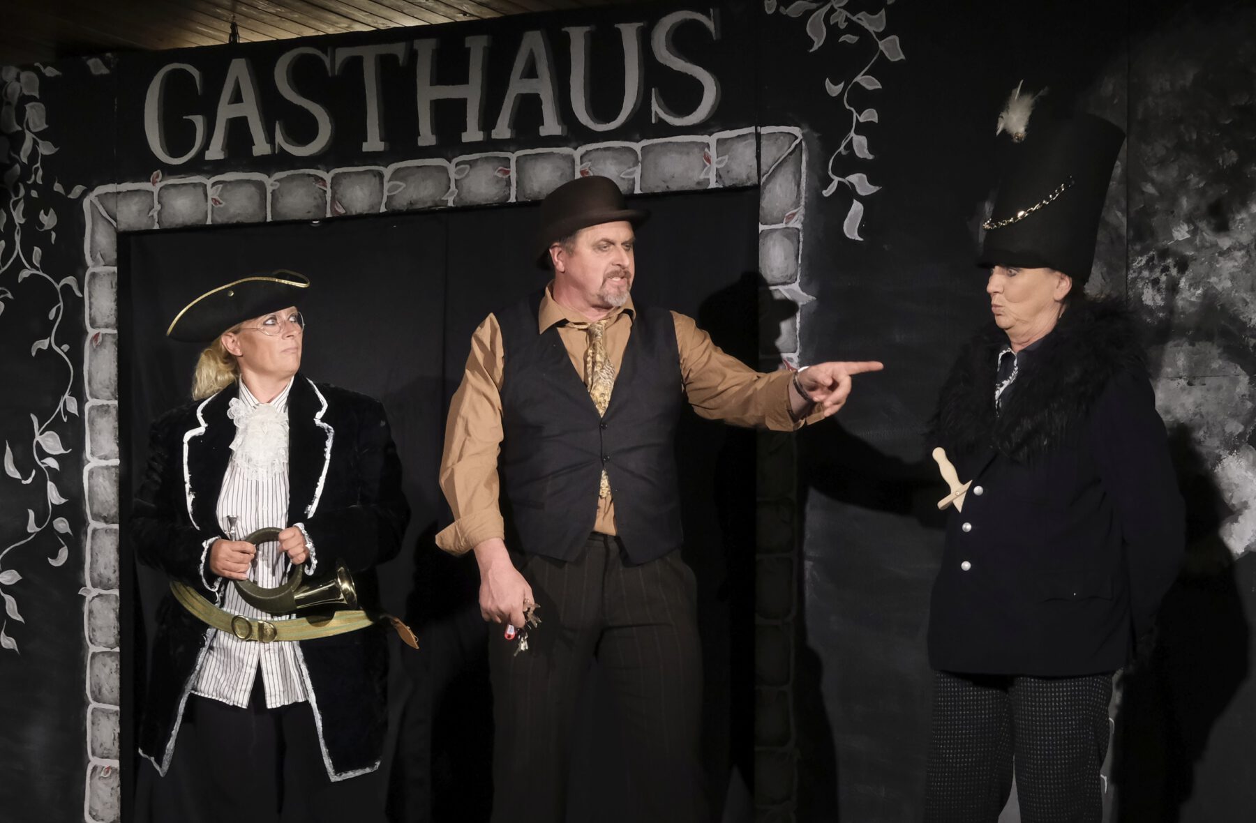 Am Ende wird ja doch nichts so heiß gegessen, wie es gekocht wird. So zum Beispiel die Suppe für den Wirtshausmusiker im zweiten Teil, welcher sich im nahegelegenen Gastgarten eines wahrhaftigen Wirtshauses des Grauens abspielt. Hier herrscht nicht nur Weinzwang, sondern auch der Käse wird aus Flaschen. Obwohl sich die marodierende Bande auf die Innenstadt zubewegt, hält man den Betrieb unverdrossen aufrecht. Ehen werden angebahnt oder wahlweise aufgelöst und selbst die Wirtshaussemmeln durchleiden hier Tragödien Shakespeare´schen Ausmaßes.