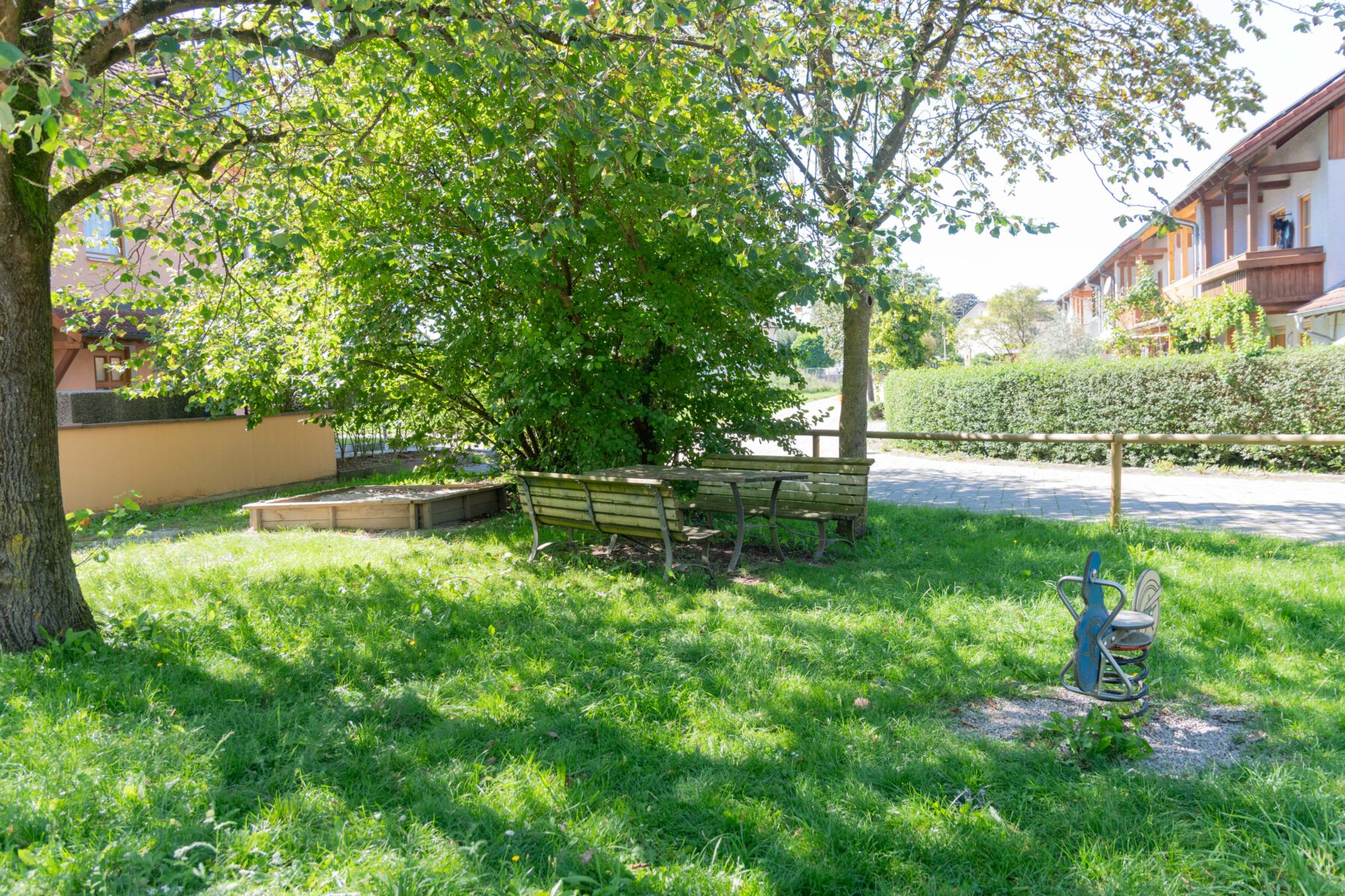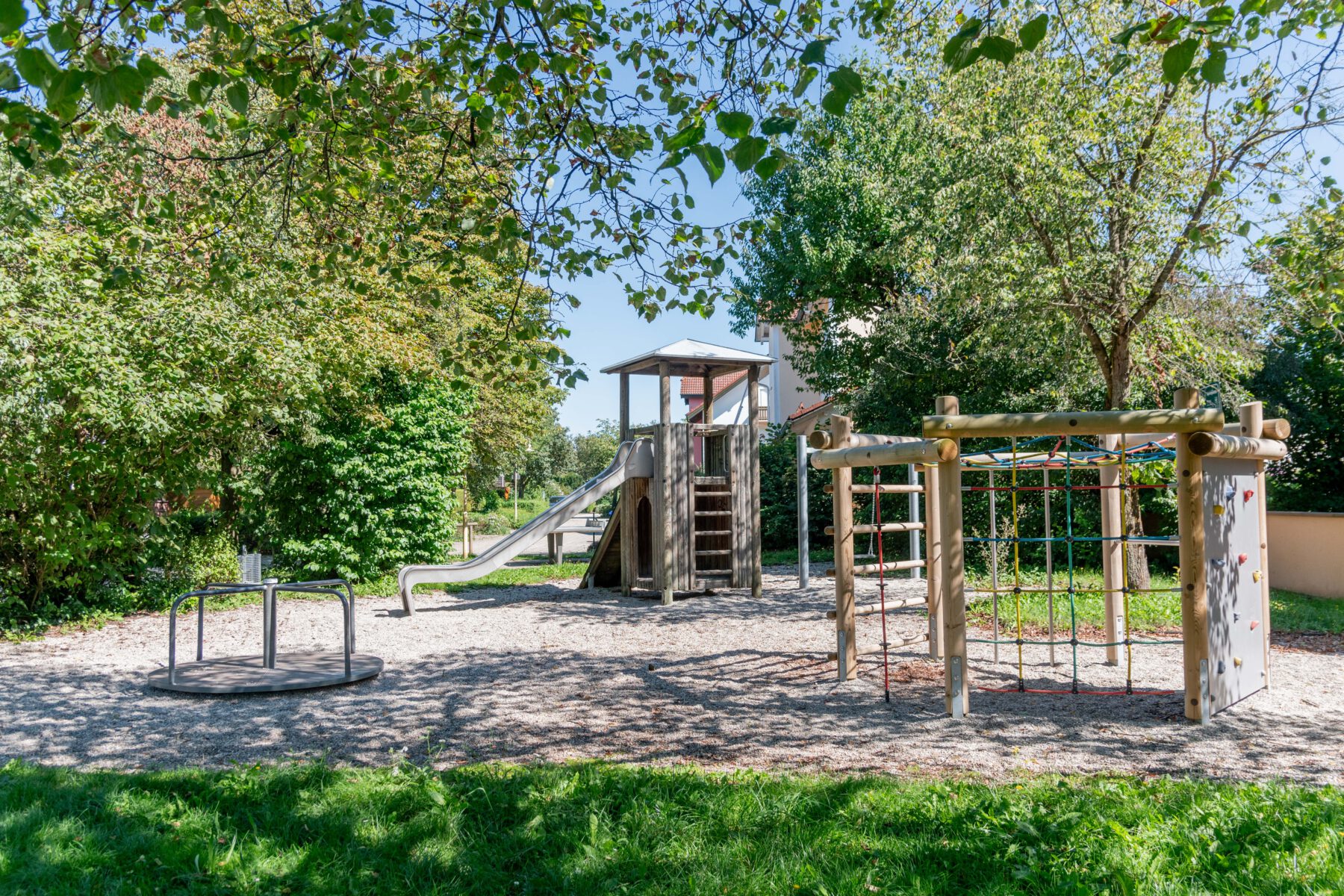 Hinter einigen Bäumen versteckt liegt der Spielplatz am Doktor-Wolfgang-Gruber-Weg. Er bietet seinen großen und kleinen Gästen viel Abwechslung und Spaß. Wer sich vom Toben, Rutschen und Schaukeln ausruhen möchte, setzt sich auf eine der beiden Bänke an den Holztisch und trinkt ein Schluck oder genießt seine mitgebrachte Brotzeit.